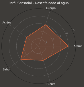 El resultado es una taza suave, con baja acidez, un dulzor achocolatado, cuerpo equilibrado y un retrogusto limpio y medio. Es una opción ideal para quienes buscan disfrutar del sabor del café a cualquier hora del día, con un contenido en cafeína inferior al 0,1%.