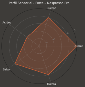 Las cápsulas Forte están pensadas para quienes disfrutan de una taza intensa, con un perfil aromático marcado y un sabor que perdura. Esta mezcla de robusta y arábica se presenta en cápsulas de aluminio 100% reciclable, diseñadas para mantener la frescura del café molido mediante un proceso de sellado con nitrógeno, que protege los granos del oxígeno y la humedad.