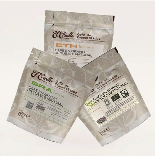 - Doble Label (250 g): un café con certificado BIO y Fairtrade. 100% Arábica de tueste natural con notas de chocolate, flores y cítricos, acidez media y cuerpo ligero.