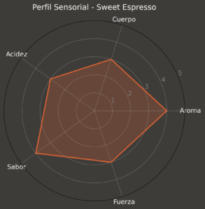 Sweet Espresso es el resultado de una cuidada selección de dos orígenes Arábica que, al combinarse en proporciones equilibradas, dan lugar a un café redondo, con una personalidad única y un perfil sensorial dulce, sedoso y aromático.